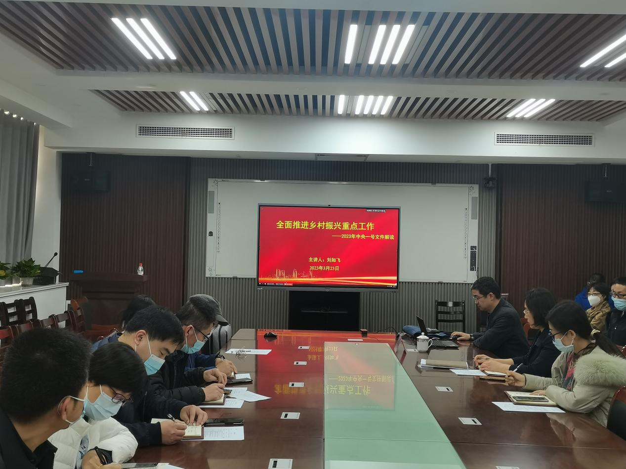 为深入学习贯彻2023年中央一号文件精神,3月23日永利娱高ylg060net在生物楼C305召开“2023年中央一号文件”专题解读会议。会议邀请马克思主义学院刘如飞副教授主讲,学院全体教职工参加宣讲会,学院党委书记孙景福主持。