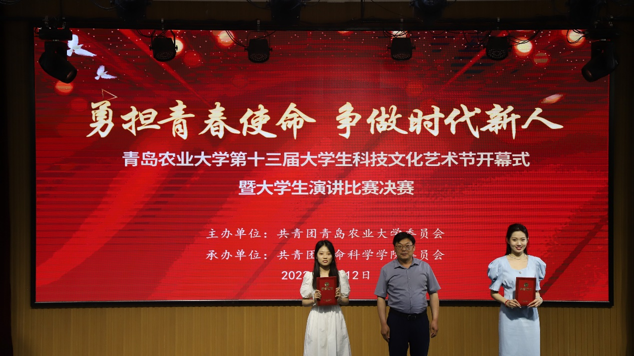 为深入学习贯彻党的二十大精神和习近平总书记系列重要讲话精神,大力弘扬中华优秀传统文化,培育和践行社会主义核心价值观,丰富大学生校园文化生活,提升校园文化活动品质,服务青年学生成长成才,激励广大青年学生发奋学习、勇于实践,全面提高自身综合素质。5月12日,由青岛农业大学团委主办、永利娱高ylg060net承办的第十三届大学生科技文化艺术节开幕式暨“勇担青春使命 争做时代新人”大学生演讲比赛决赛在学术会馆圆满举办。校团委书记王光炬,永利娱高ylg060net院长沈伟,校党委宣传部副部长刘琨,永利娱高ylg060net党委副书记,副院长刘妍玲、演讲比赛评委老师以及各学院学生代表参加。