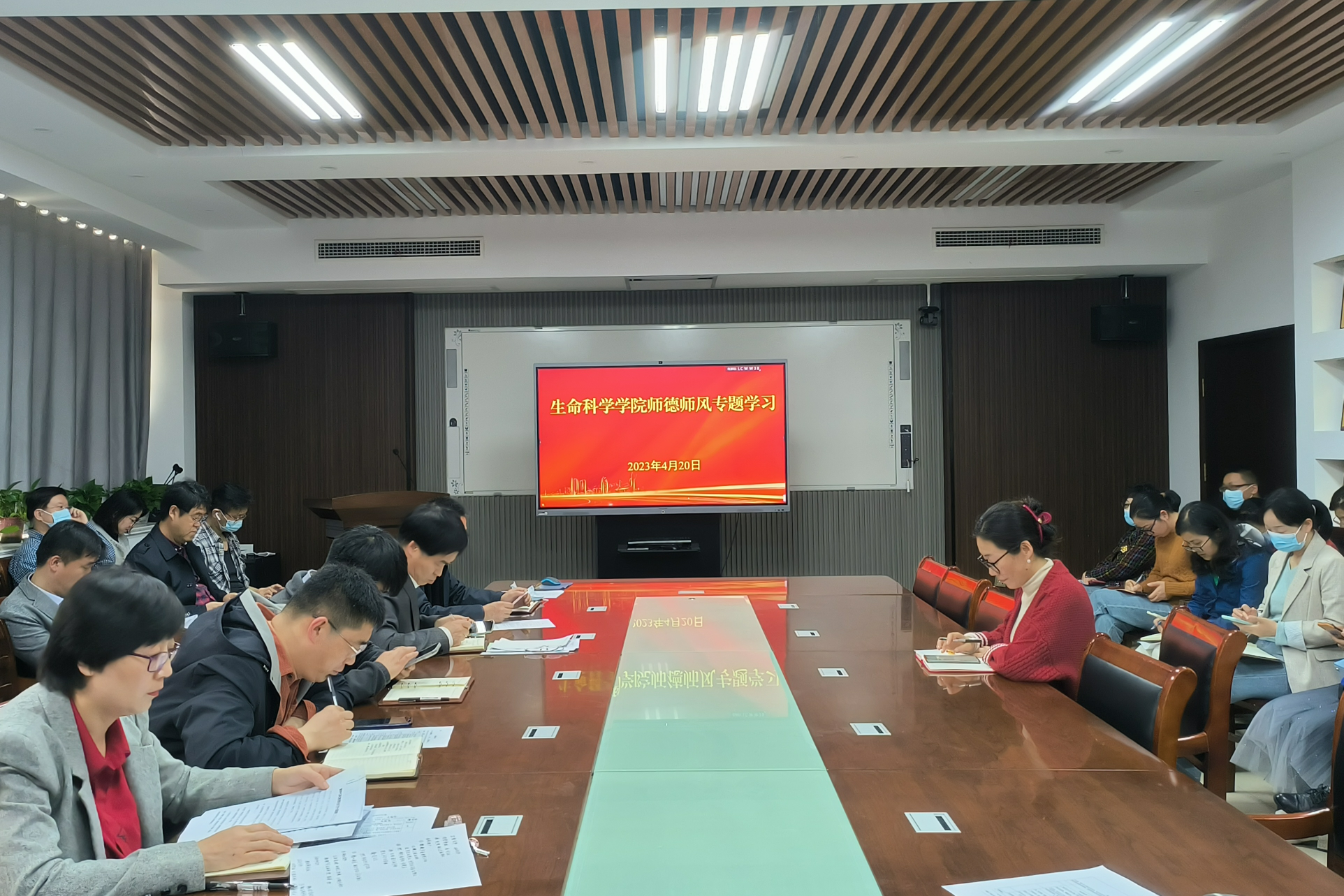 随后,孙景福传达了学校保密工作会议精神,并对学院保密工作处部署安排。院长沈伟指出全体教职工要加强教职工师德师风自查自纠,深刻自我检视,围绕课堂教学、关爱学生、师生关系、学术研究、社会活动等方面开展师德师风建设自查监督。