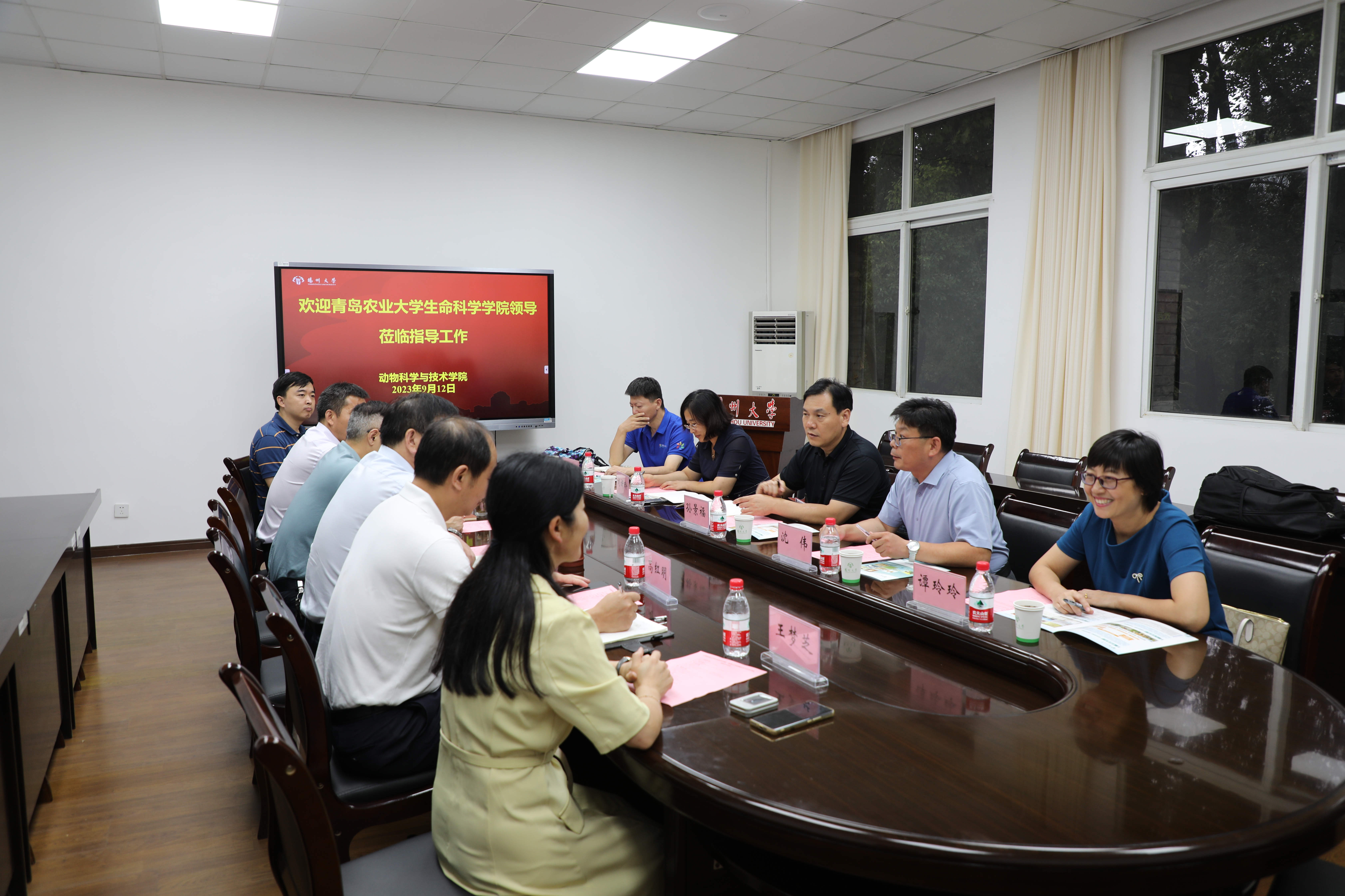 为进一步加强沟通交流,学习兄弟院校在思政育人、专业建设、科研团队组建、科技成果转化等方面的先进经验,7月12日-13日,永利娱高ylg060net党委书记孙景福、院长沈伟、党委副书记刘妍玲、副院长谭玲玲及产业学院常务副院长李树文一行赴扬州大学生物科学与技术学院、动物科学与技术学院交流学习。